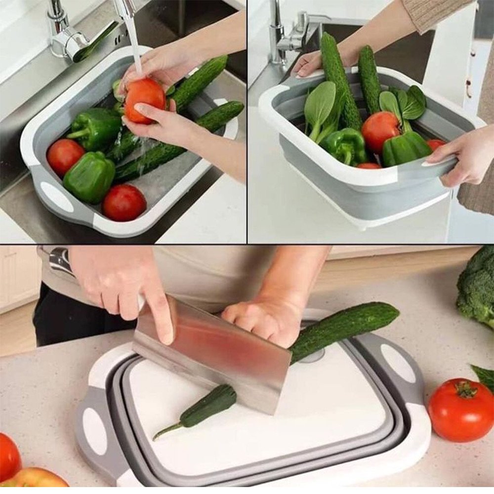 هتغسلي الخضروات و الفاكهة و هتقطيهم في نفس الطبق مع صفاية و لوح تقطيع 2 في 1 وفري فلوسك .