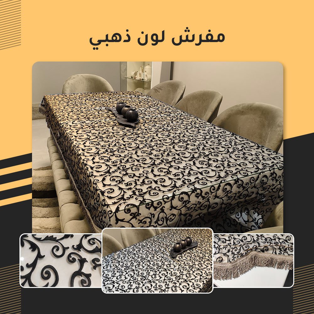 ضيفي لمسات بسيطة لبيتك تساعدك علي تغير شكل البيت مع مفرش لون ذهبي للسفرة، هتجددي في بيتك.