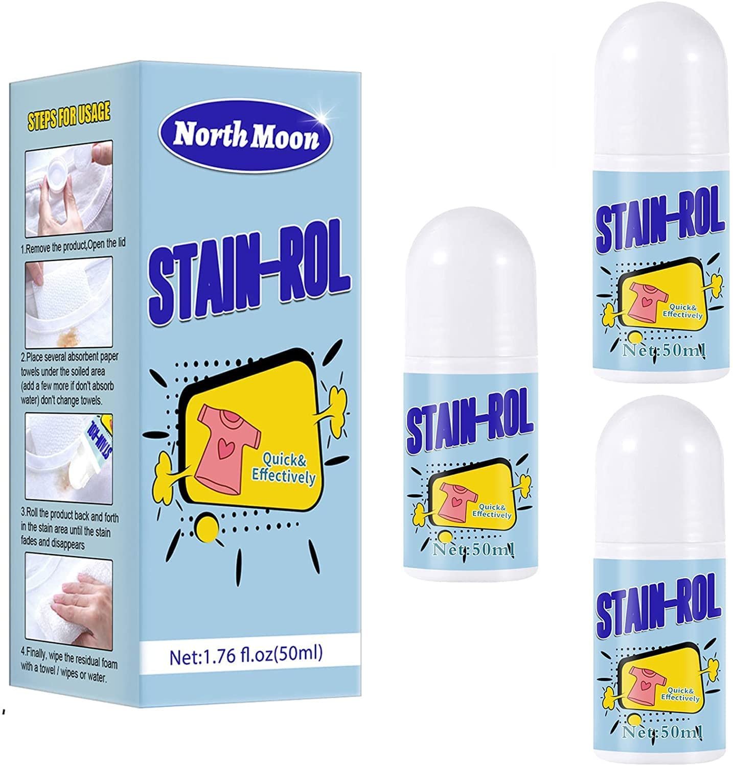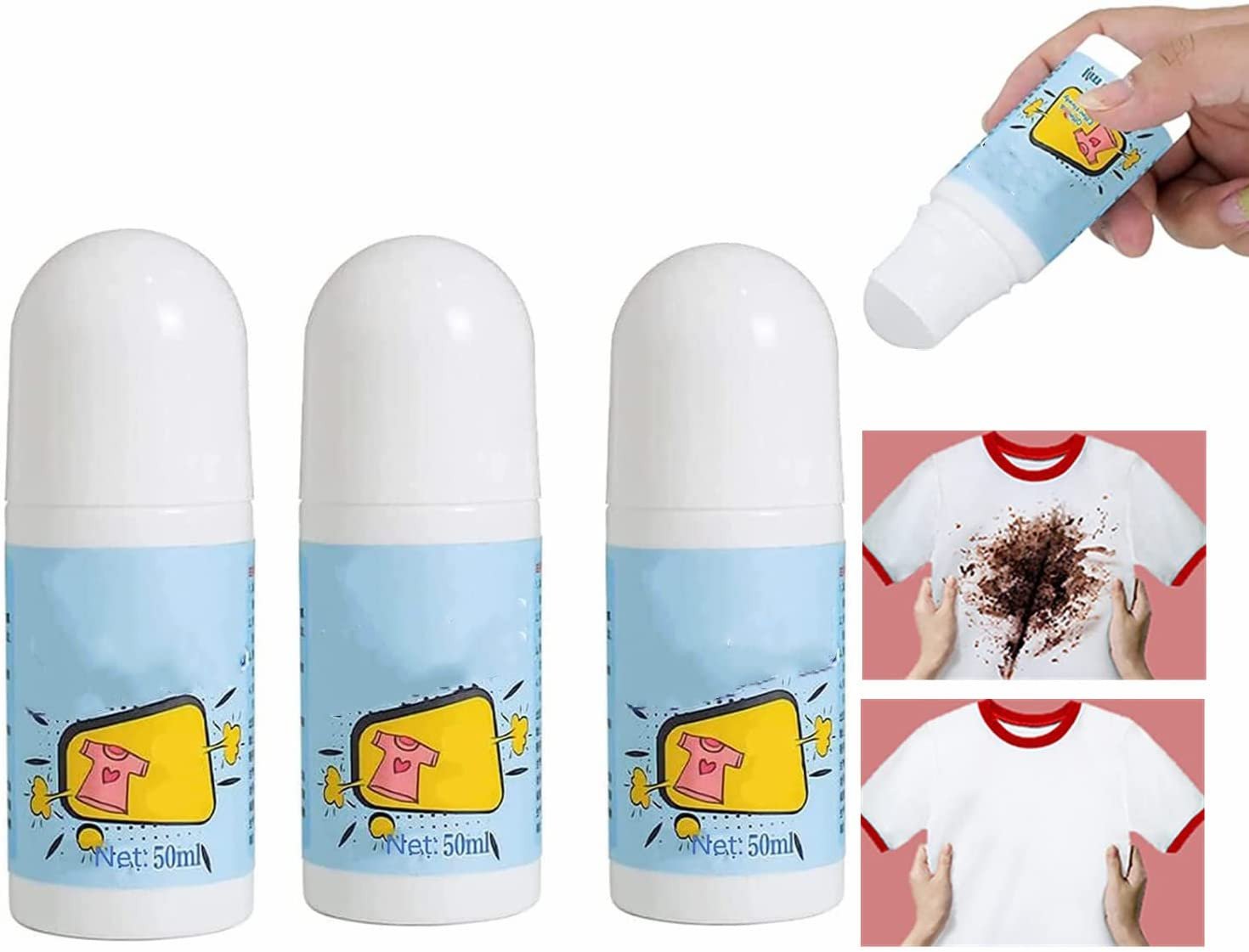 مع عرض ثلاث قطع رول مزيل البقع السحري .