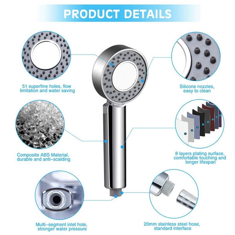 المميزات في مكان للشاور في السماعة يعني هتستغني عن الليفة . بتلف معاك 360 درجة و في كل الاتجاهات. هتقدر تتحكم في كثافة المياه خفيفة أو دش أو حتى حنفية . فيها فلتر لتنقية المياه مش هيضر الشعر . سهل التركيب و الفك تقدر تسافر بيها مش بتاخد حيز .