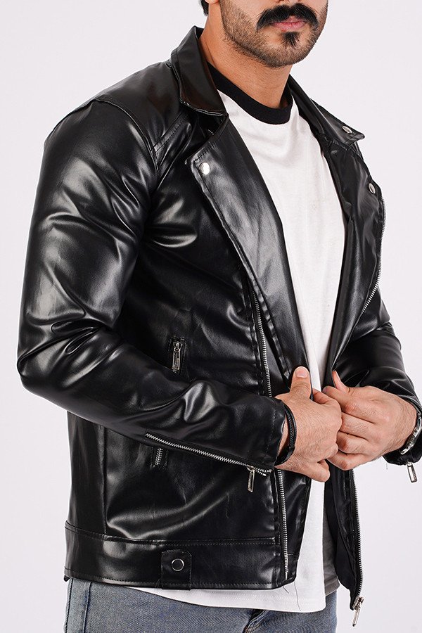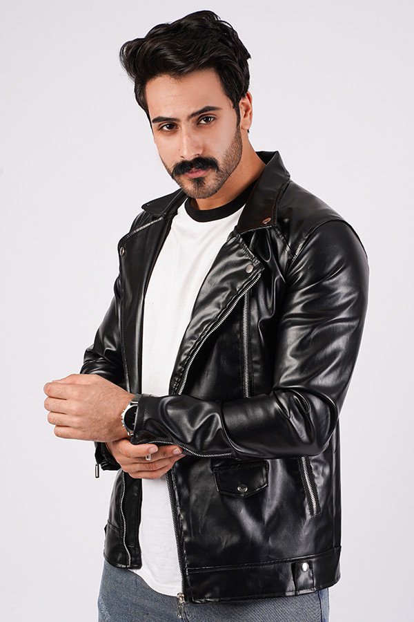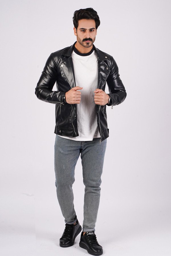 الراعي الرسمي للشتا، جاكيت جلد خامة عالية الجودة تعيش معاك، تفاصيله مميزة و عملي، مريح في اللبس هينفعك في كل مناسباتك، هتكمل أناقتك و تبقى مختلف، خليك دايمًا نمبر وان بشياكتك و تميزك.