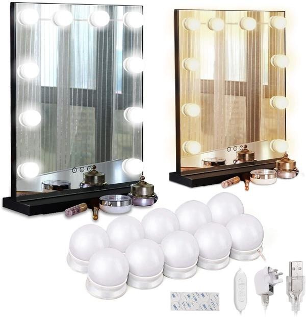 *طريقة الاستخدام* بيتم مسح المرايا بشكل جيد قبل التركيب اللمبات ببتلزق بسهولة على المرايا بدبل في قوي ملزوق في كل لمبة واحد لسهولة التركيب للتشغيل بتوصل وصلة الـ USB بسهولة في رأس أي شاحن أو في لابتوب تقدر تختار قوة الإضاءة و لونه من زرار التحكم في سلك اللمبات
