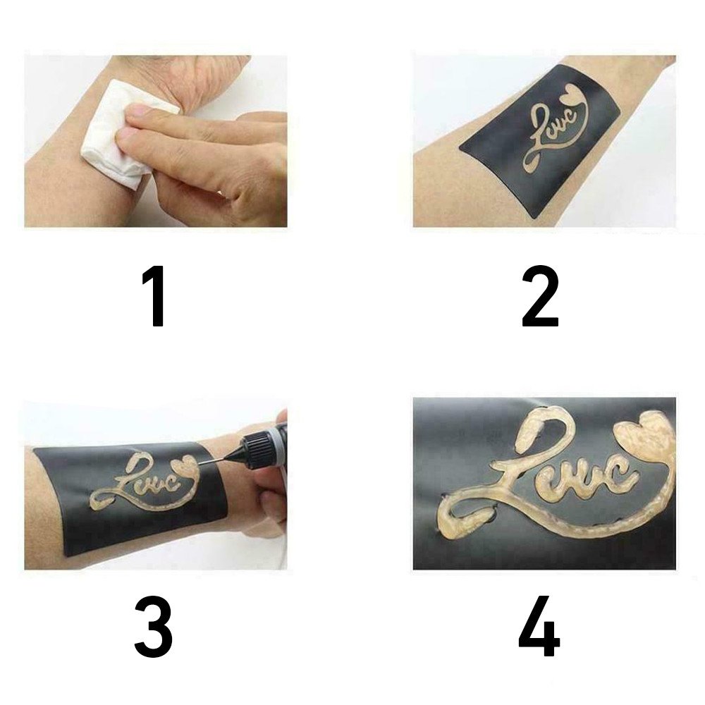 المميزات تقدري تستخدمي الرسمة اكتر من مرة. 6 أشكال عشان تقدري تختاري منهم اللي تحبية. بيقعد من 15 ل20 يوم بثبات عالي. تجنب مخاطر التاتو الدائم. حبر التاتو لا يمتصة الجلد. يمكن إزالتة بكل سهولة.