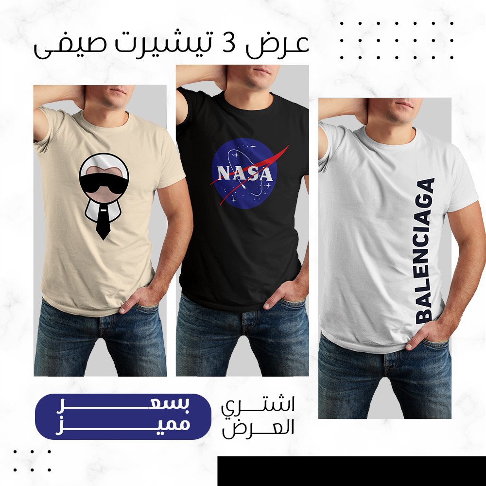 - 3 تيشرتات بالوان ورسومات مختلفة تقدر تلبسهم باكتر من شكل