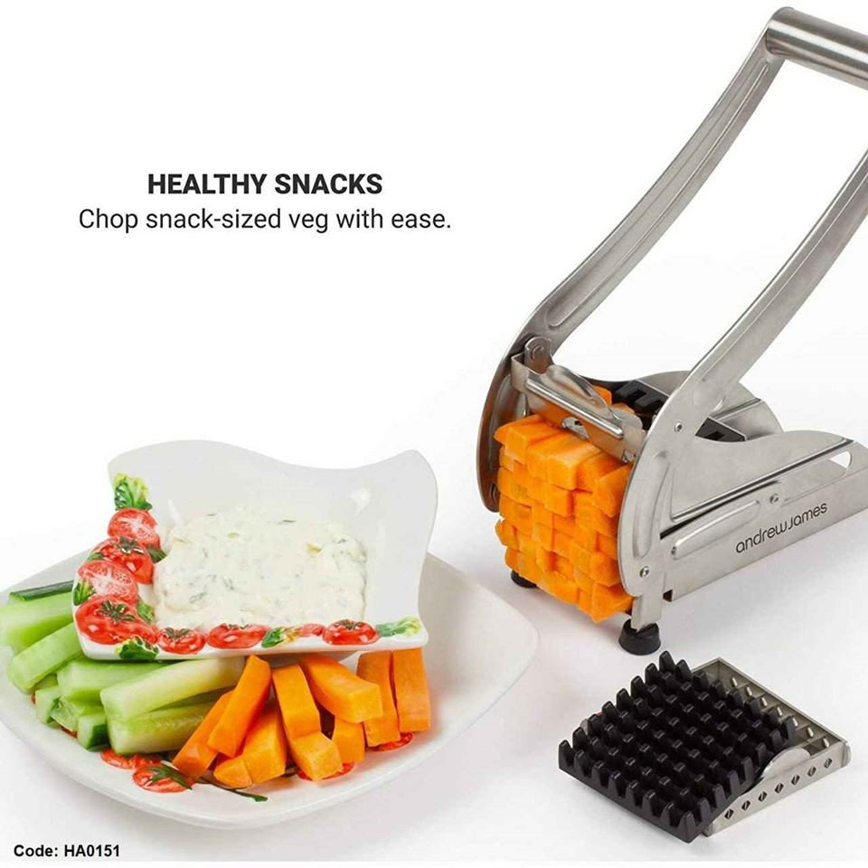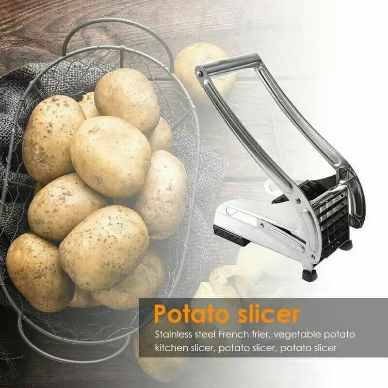 قطاعة بطاطس ستانلس ستيل مثالية في المطبخ لعاشاق البطاطس تقطع البطاطس جاهزة للقلي وعلى الاطراف يوجد أرجل مطاطية تساعد في تثبيتها اثناء التقطيع ذات جودة عالية وآمنة في غسالة الصحون ويمكن أيضا أن تستخدم هذه الأداة لتقطيع الخضروات القاسية مثل الجزر أو الخيار الأبعاد ( 26 سم * 9 سم )