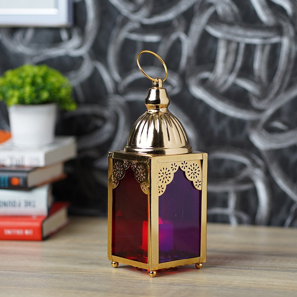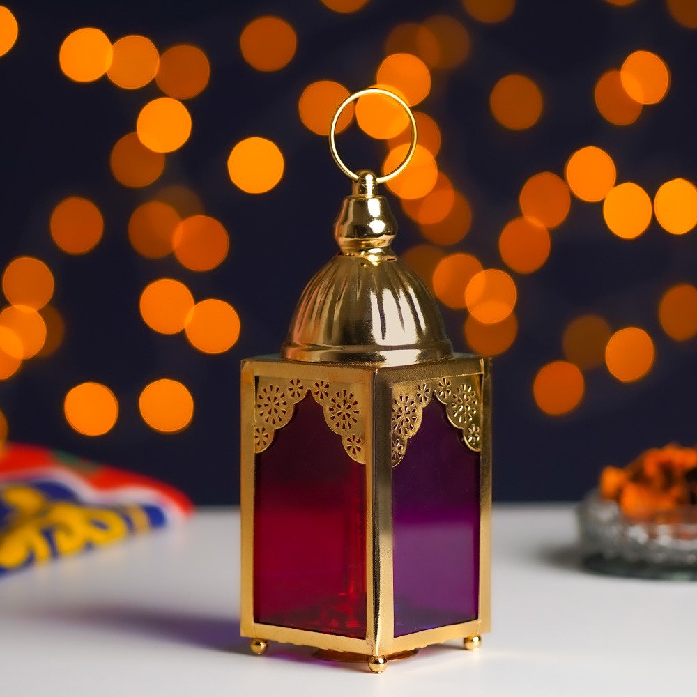 احلى فوانيس، فوانيس زمان اللي بالشمعة، وألوان زجاجها اللي بيضيف بهجة وفرحة لرمضان، فانوس النسدباد الذهبي بستايل فوانيس زمان