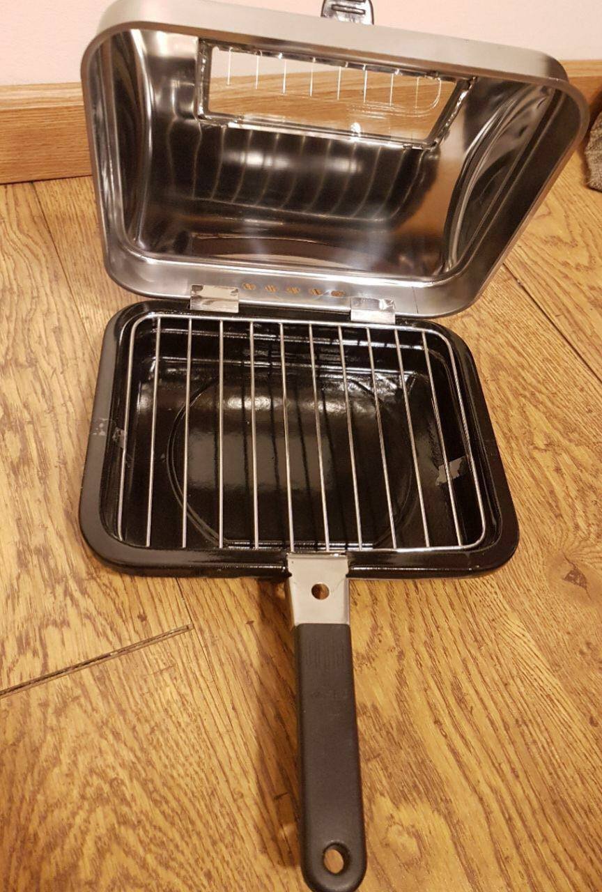 المميزات مش بتطلع دخان تستخدميها في المطبخ بكل سهولة . مش هتقلقي من الحرارة العالية ولا حرقان في العين . هتشوي علي البوتجاز بكل سهولة من غير فحم ولا حرارةمش هتكسل تعمل أكل الدايت لأنها هتسهل عليك و ف خلال دقايق هيكون جاهز . بتشوي الأكل بطريقة صحية عن طريق الحرارة و البخار . هتساعدك تاكل أكل صحي دايما بدهون أقل . معاها شبكة تحطي عليها الأكل و تضيفي الماية في العمق الداخلي ليها و خلال دقايق الأكل يكون جاهز . سهلة الأستخدام و هتقدري تنضفيها بسهولة . حجمها مناسب تقدري تعملي فيها فرخة أو كيلو لحمة اليد بتاعتها مقاومة للحرارة .