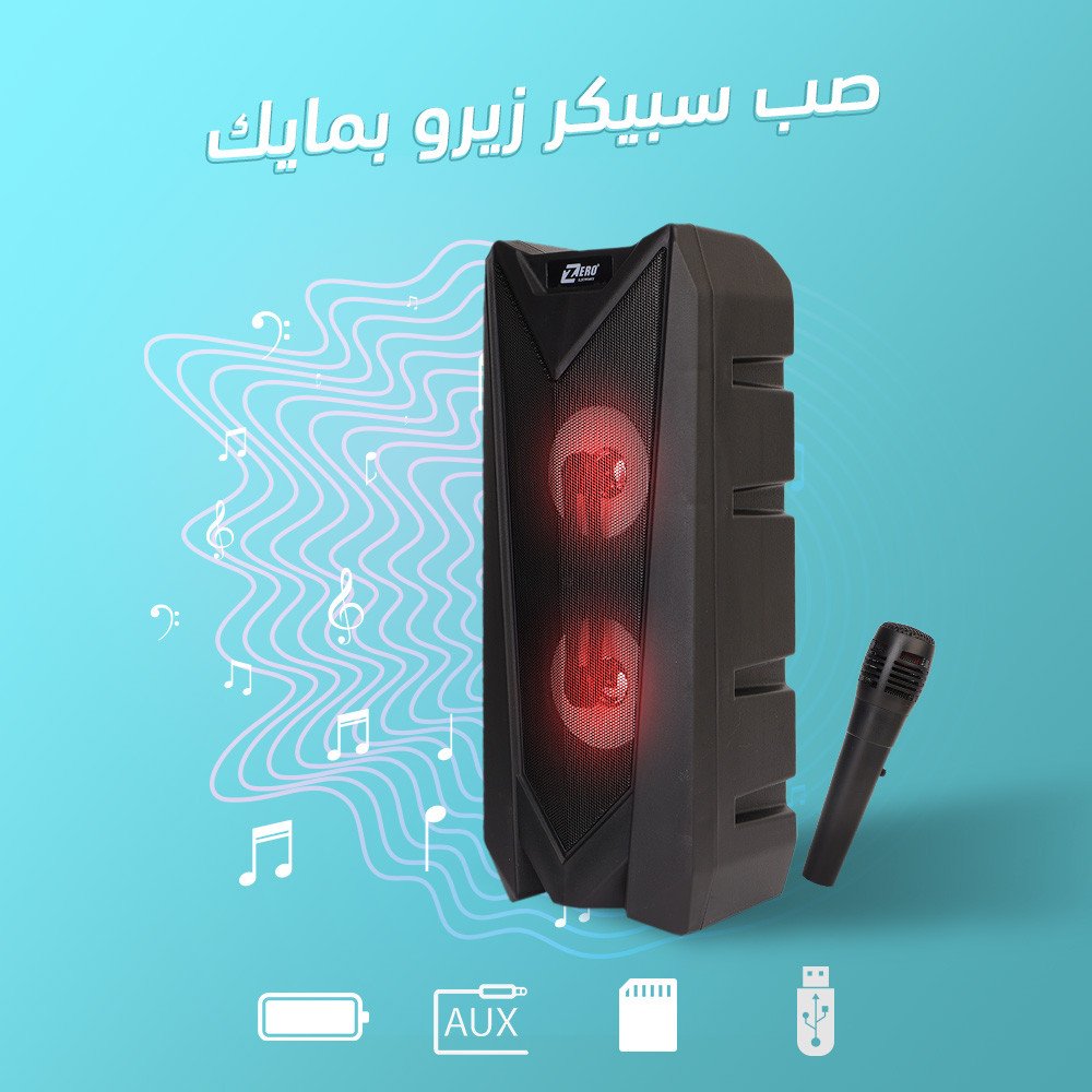الوصف الماركة :- Zero . الجهد :- 3.7 فولت . المدخلات :- 5 w. المخرجات :- 5 w. سعة البطارية :- 1200 ملي امبير . الابعاد :- 167*148*405 مم . حجم السبيكر :- 4 بوصة . الشكل عشوائي .