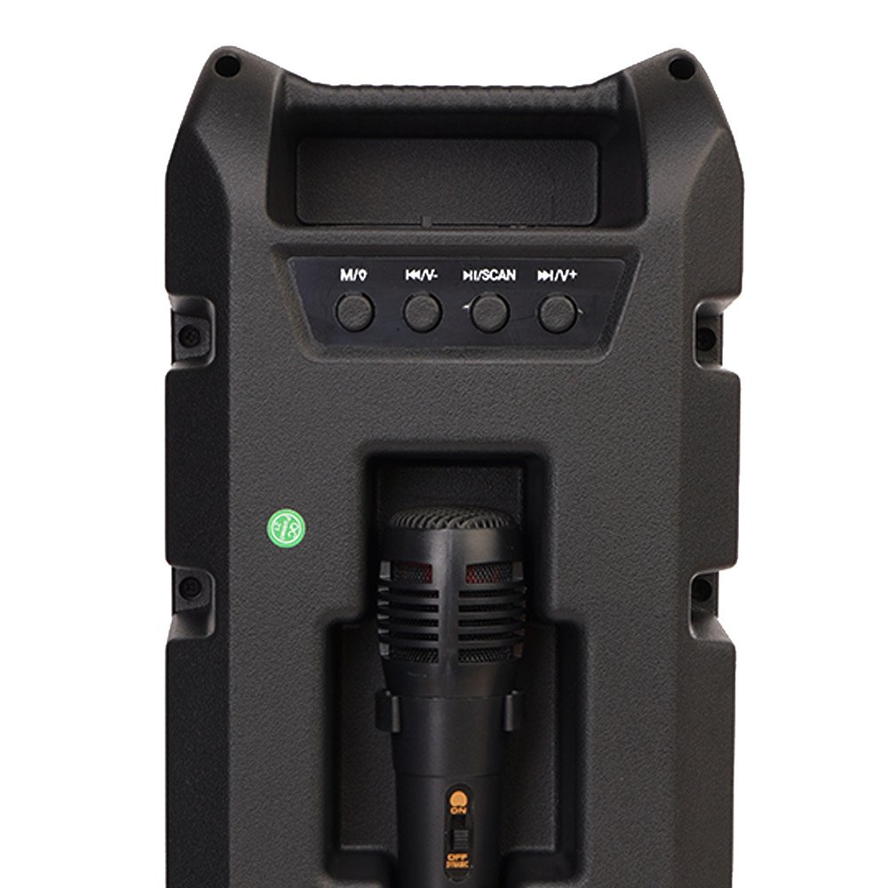 المميزات معاه وصلة شاحن يعني مش هتحتاج تشتري وصلة و كمان سعة البطارية كبيرة 1200 ملي امبير . خفيف و سهل الاستخدام تقدر تتحرك بيه في اي مكان لان في مكان للايد . في مايك عشان تقدر تغني وانت بتسمعه . خامته من البلاستيك المقوي لو وقع منك مش هيتكسر . هتقدر تشغله بلوتوث و تقدر تشغله وصلة من الموبايل .