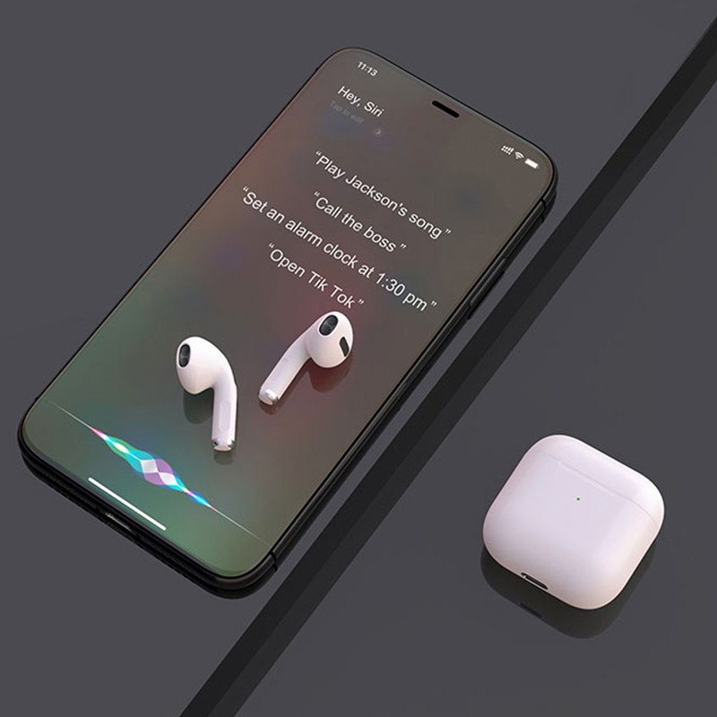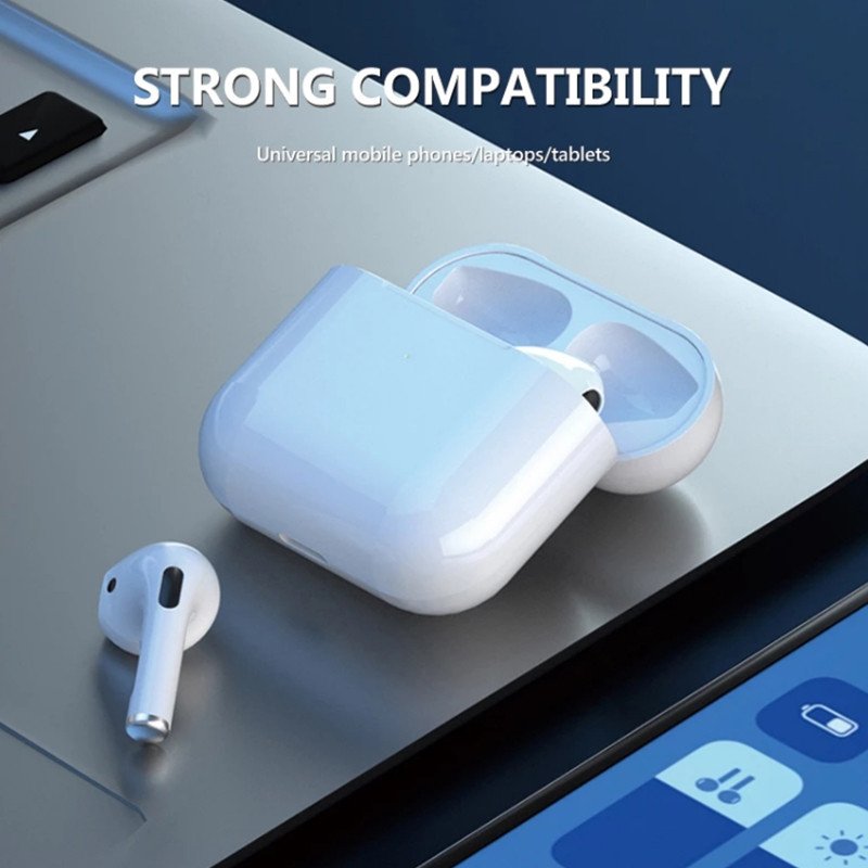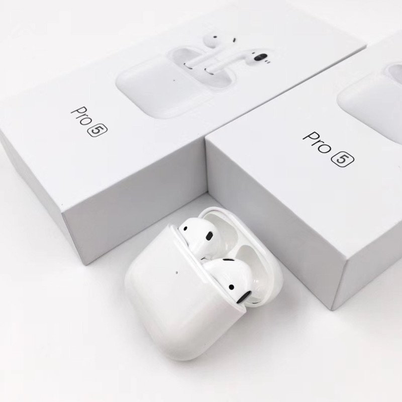 سماعة أيربودز برو 5 لونها أبيض صوتها عالي و واضح و خفيفة الوزن و بتدعم نظام الأندرويد و IOS